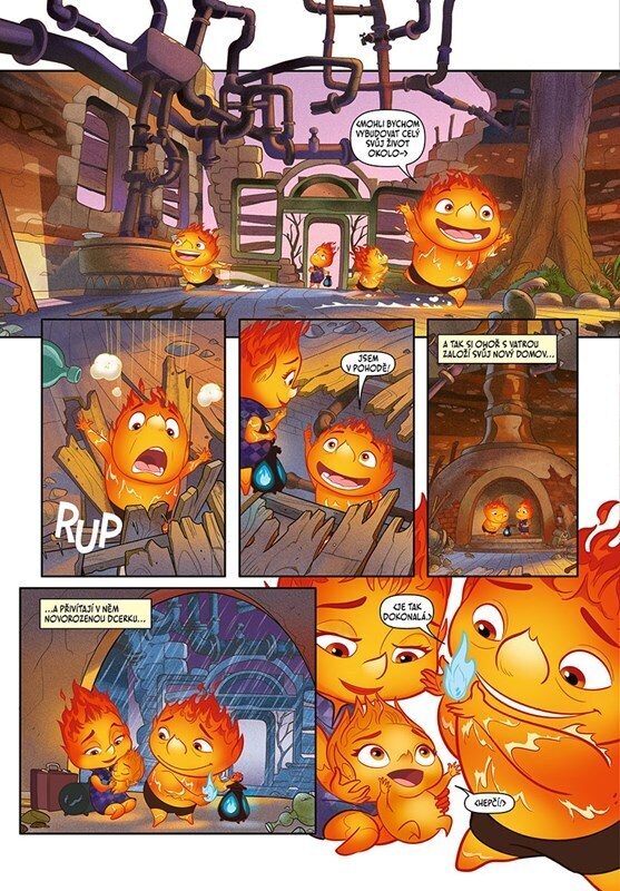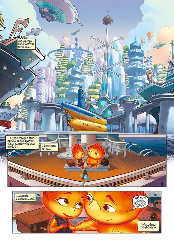 Životem pulzující Město Živlů je domovem zemních, vzdušných, ohnivých i vodních živlů. Když ohnivka Jiskra Lumenová potká vodáka Vlhoše Vlnu, vznikne mezi nimi přátelství, které Jiskra musí před svými tradičními rodiči Ohořem a Vatrou tajit. Voda a oheň k sobě přeci nepatří… že? Až díky...