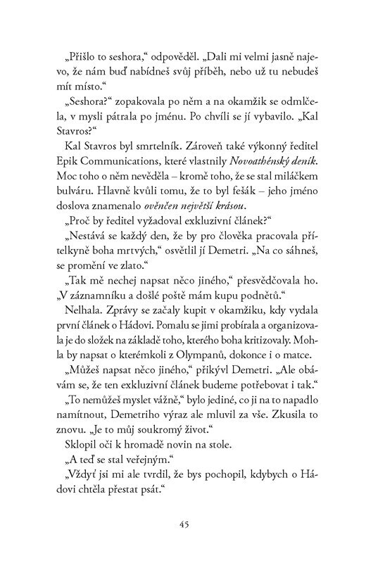 Persefonin vztah s Hádem se provalil. Následná mediální smršť ji připravila o veškeré naděje na normální život – teď může kdokoli zjistit, že je bohyní jara. Hádova temná minulost skrývá mnoho kostlivců ve skříni, jejichž odhalení by vše mohlo ještě zhoršit. A do toho Persefonu zasáhne nečekaná...