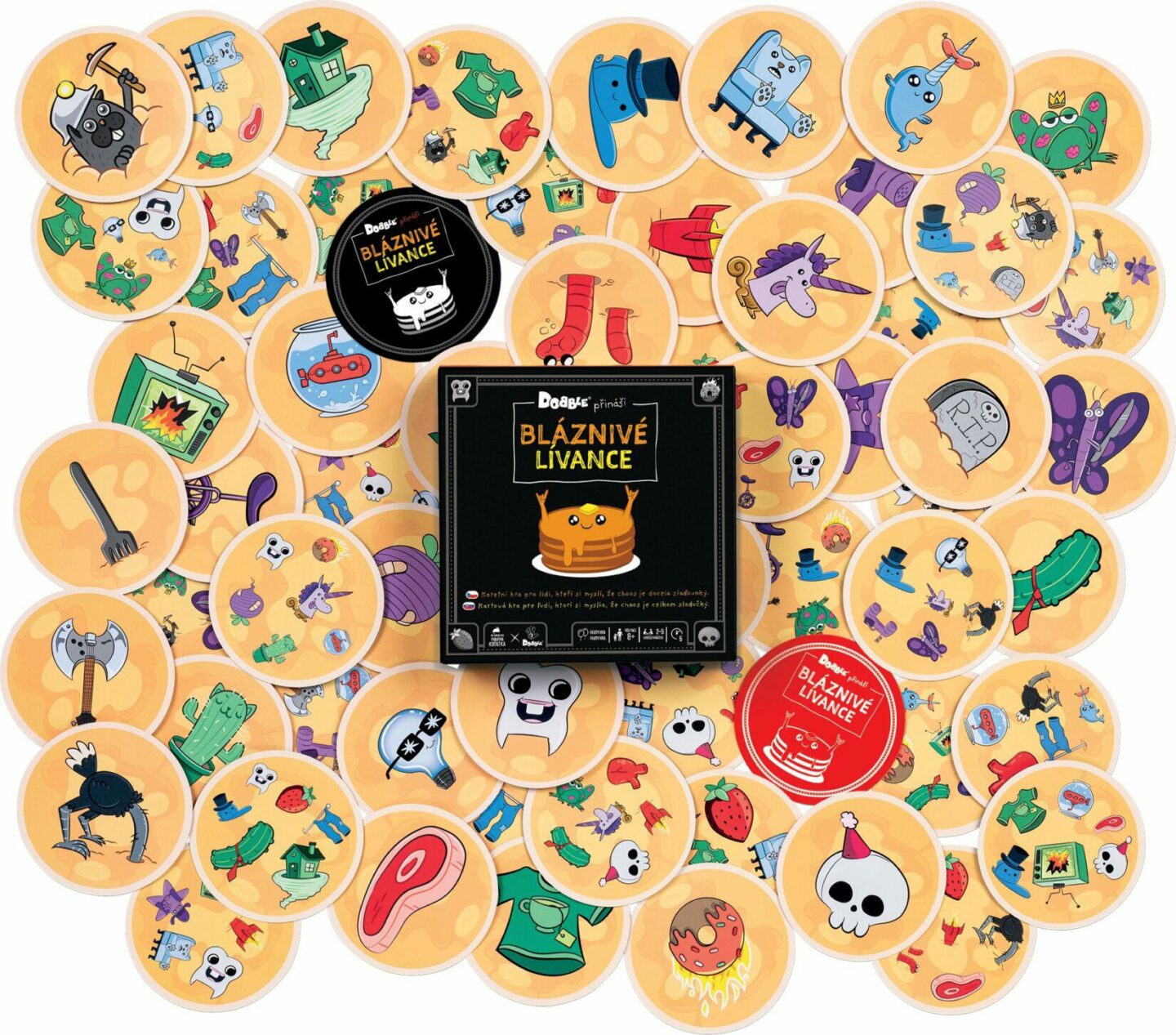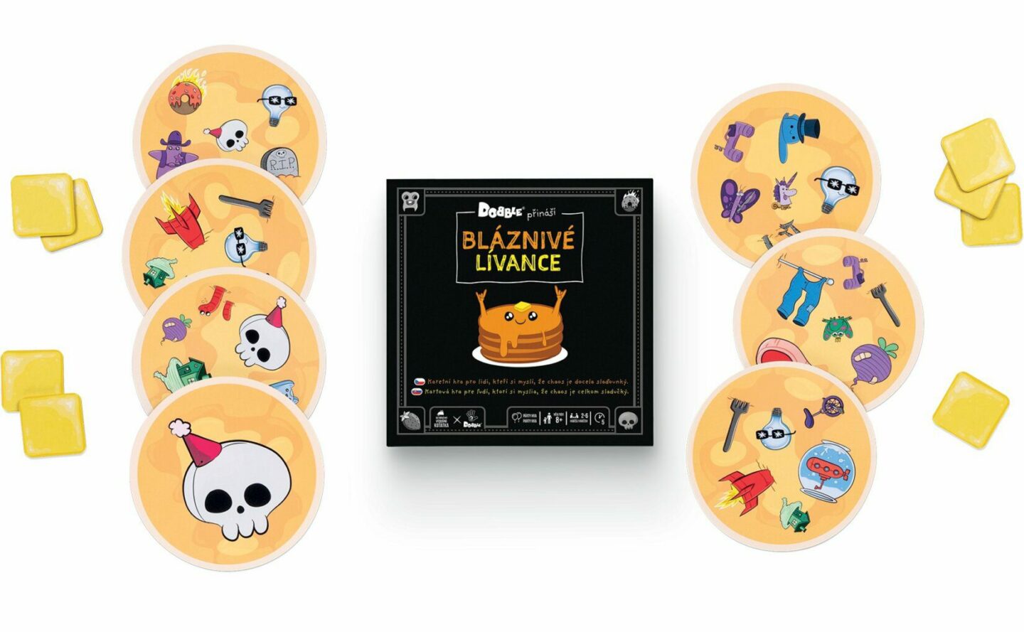 jak pro vaše ratolesti, tak i pro dospělé a všechny milovníky svižných karetních her a dobré zábavy. O co ve hře jde? Všichni dostanete spoustu karet lívanců s nevhodnými příchutěmi a vašim úkolem je porovnat své příchutě s příchutěmi ostatních hráčů a donutit je, aby