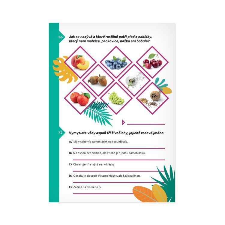 Sešit plný kvízů, rébusů hádanek, které se orientůjí na různá témata. Sešit obsahuje velké množství úkolů, které využívají fotky a ilustrace. Rozměry: 12 cm × 17 cm × 0,3 cm