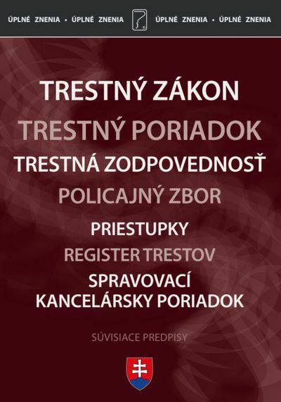 vypočúvanej osoby a toto oprávnenie rozšíriť aj voči tlmočníkom. Titul obsahuje úplné znenia zákonov k 1. 4. 2023 1. TRESTNÉ PRÁVO ZÁKON č. 300/2005 Z. z. Trestný zákon ZÁKON č. 301/2005 Z. z. Trestný poriadok ZÁKON č. 330/2007 Z. z. o registri trestov ZÁKON č. 91/2016 Z. z.