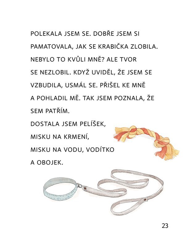 Jednoduché vyprávění je určeno nejmenším čtenářům. Společně s hravým štěňátkem, které objevuje svět, se seznámí s radostmi, ale i se strastmi obyčejného psího života. Štěňátko poznává, jak je důležité mít svůj pelíšek a svoji misku. Zjišťuje ale také, že to vůbec nejdůležitější je domov a...