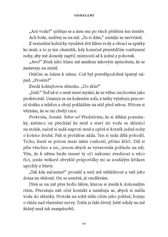 Erotický román Odhalení je první díl tetralogie This Man. Od samého začátku Vám nedovolí vydechnout: budete se zmítat ve vlnách citů, propadat se do hlubin vášně i stoupat do výšin romantické lásky.