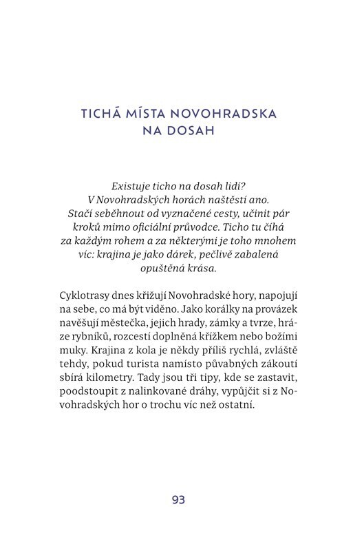Chcete cestovat a zároveň hledáte klid? Pak nepotřebujete jen mapu, ale také navigaci pro svou duši. Nechte se zavést na zapadlé naučné stezky, opuštěné hřbitovy i ztichlé obce uprostřed lesů v oblasti Novohradských hor. Ticho tu číhá za každým rohem a za některým je toho mnohem víc – krajina...