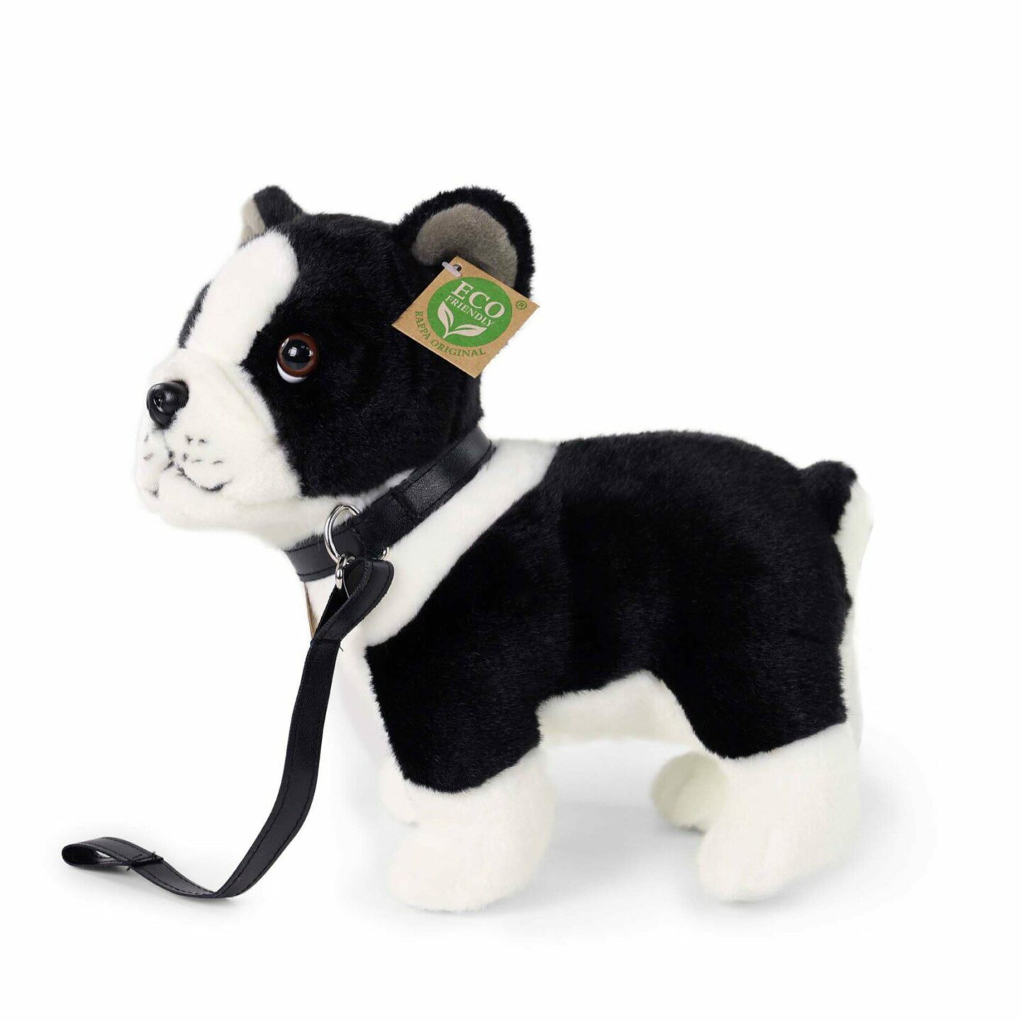 Plyšový pes Bostonský teriér s vodítkem stojící 23 cm ECO-FRIENDLY