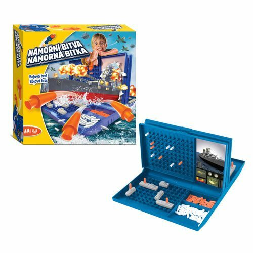 Bojová hra! Převezmi velení nad námořní bitvou. Připrav se na to, že budeš střílet, ale můžeš být i zasažen. Vyhrává hráč, který jako první vyřadí svého soupeře. Obsah: 1× hrací deska s výklopnými poklopy, 2 sady bitevních lodí, 2 sady oranžových kolíčků, 3 sady bílých kolíčků,...
