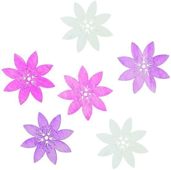Dřevěné výseky 6cm - květy růžový mix 6ks