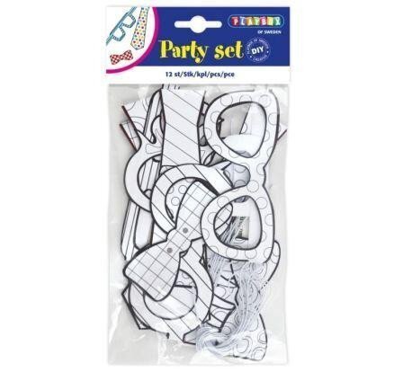 Černobílé doplňky na párty. Balení obsahuje: 4x oboustranná kravata, 4x brýle, 4x motýlek, 1x bílá gumička....