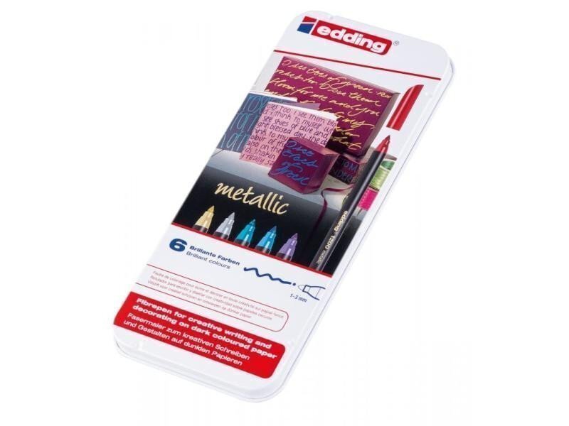 Fixy EDDING 1200, sada 6 ks, metalové barvy v kovové krabičce. Pero s kulatým hrotem pro ozdobné písmo a menší kresby. Inkoust s...