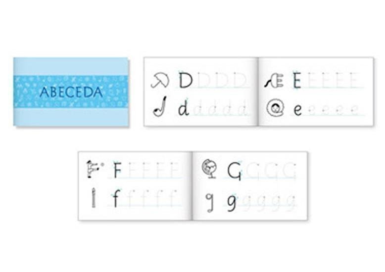 Praktická pomůcka pro praváky s celou abecedou Comenia Script universal a s obrázky „Comenia Pictures“, které si lze vybarvit....