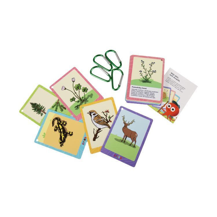 Poznávačka přírody - Zvířata a rostliny je sada 50 ilustrovaných karet nejčastějších zvířat a rostlin v České republice. Z jedné strany karet jsou ilustrace zvířat nebo rostlin a z druhé strany jejich popis a několik zajímavostí o nich. Hra obsahuje: 50 ilustrovaných karet s popisky a otvorem na...