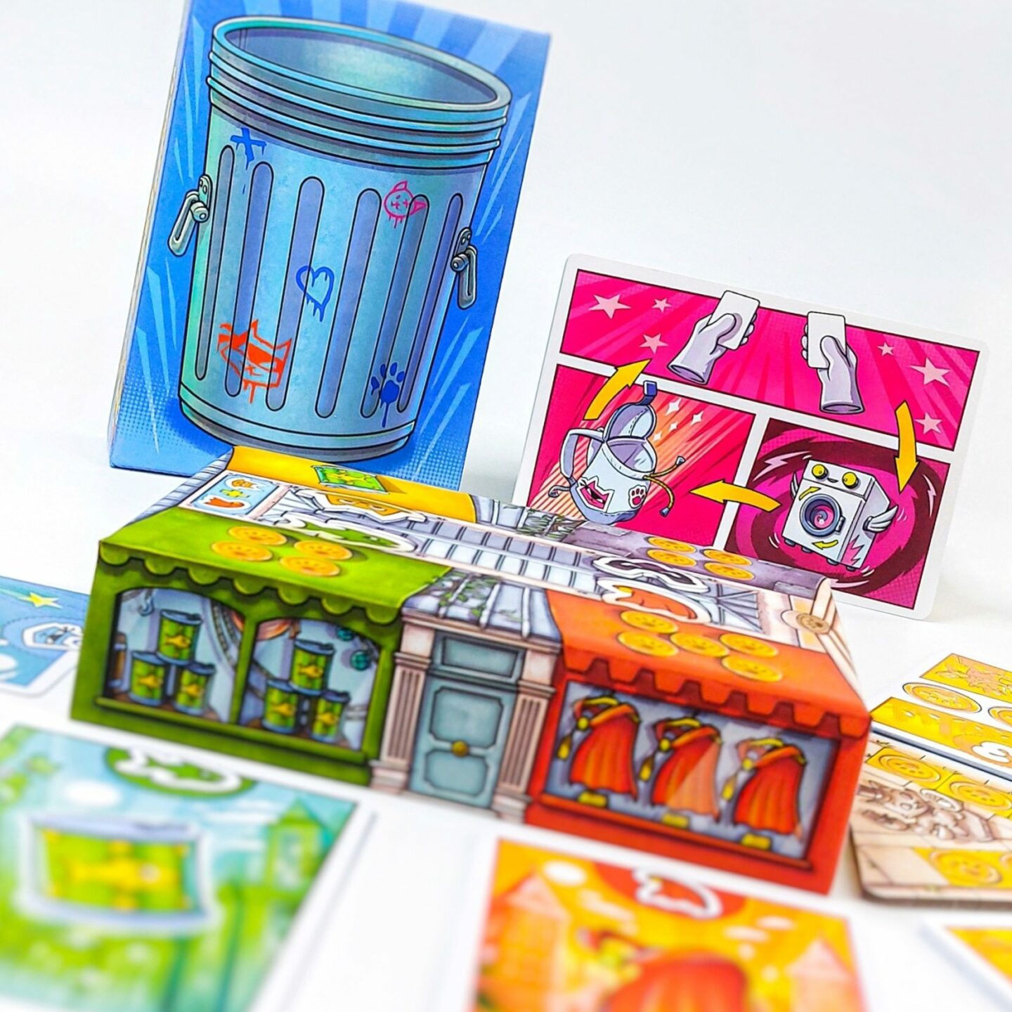Super Mňau. Abyste toho dosáhli, kupujte předměty (karty), které vám umožní ho přilákat (chutnou kočičí mňamkou) a obléknout (do jeho působivého červeného pláště). Jakmile budete mít před sebou kartu kočky a pláště, stanete se vítězem hry! - Nakupujte karty na trhu a