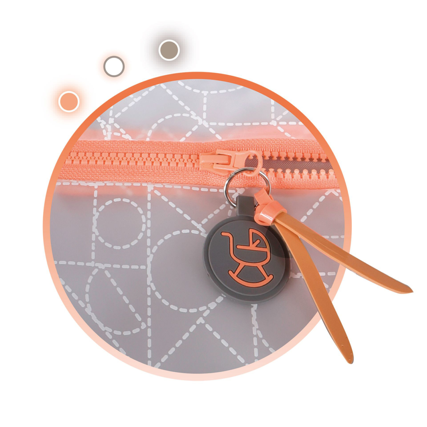 průsvitným plastem• Kryt na korbičku s průsvitnou kapsou se zipem a se suchými zipy pro uchycení• Moderní batůžek na kočárek nebo na záda s průsvitnou kapsou • Úložný prostor v dolní části kočárku• Otočná přední kolečka pro snadnější jízdu• Rozměry kočárku: