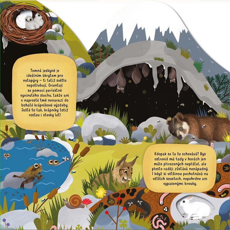 Medvěd se snaží ulovit mrštného lososa v horské říčce, svišti hledají zásoby i pod zbytky sněhu a z výšky to vše pozorně sleduje orel skalní… Kdo další je na horách jako doma? Nazuj pořádné boty a vydej se na průzkum všech horských pater! V leporelu na tebe čeká také spousta nor a dutin, které...