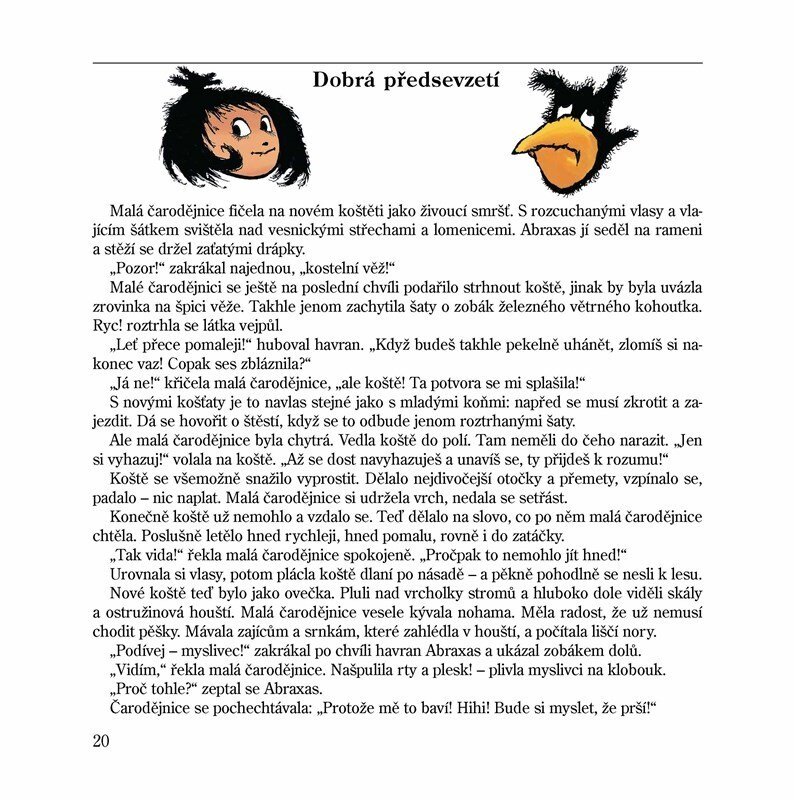 Malou čarodějnici a její povedené kousky znáte z televizních večerníčků. A kdo ne, ten si určitě rád přečte o mladé, je jí pouhých 127 let, dobré čarodějnici, která žije v lese s havranem Abraxasem. Moudrý havran je čarodějnici dobrým rádcem, a snaží se na ni i dohlížet, aby nevyváděla moc...