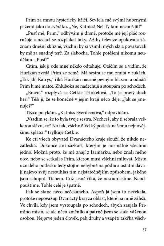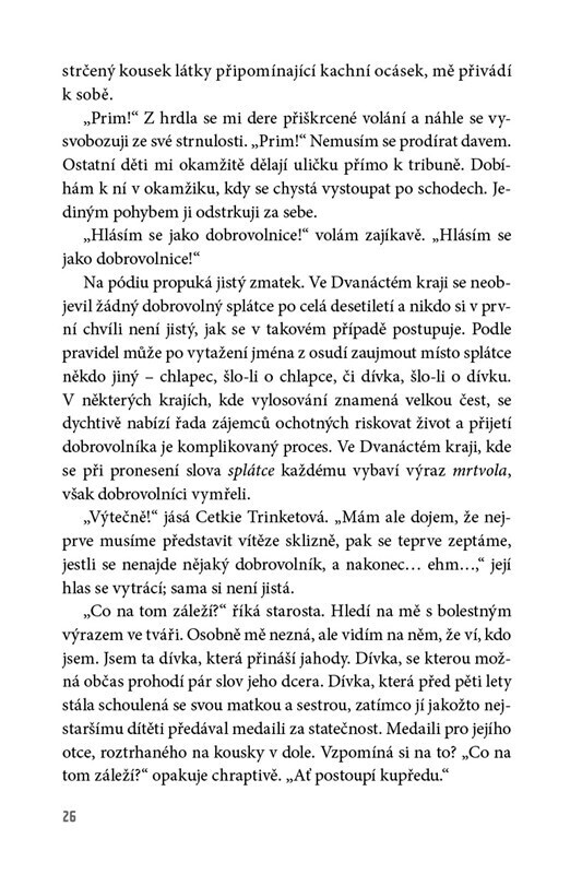Země Panem – dvanáct krajů a hlavní město Kapitol, které všem ostatním krajům vládne. Rok co rok musí jedna dívka a jeden chlapec z každého kraje nastoupit do zvrácené televizní reality show a bojovat o svůj život. Vítězství v klání Hunger games znamená slávu a bohatství. Prohra znamená jistou...