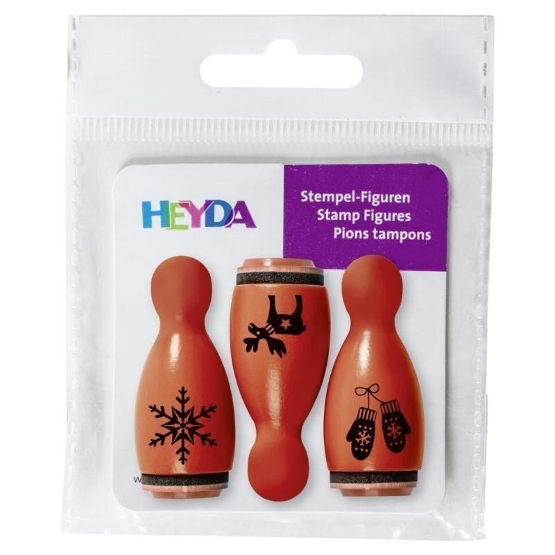 3 motivy dřevěných razítek ve tvaru kuželky. Průměr motivu cca 1,5 cm, výška razítka 4 cm. Ideální malá sadička pro tvorbu vánoč...