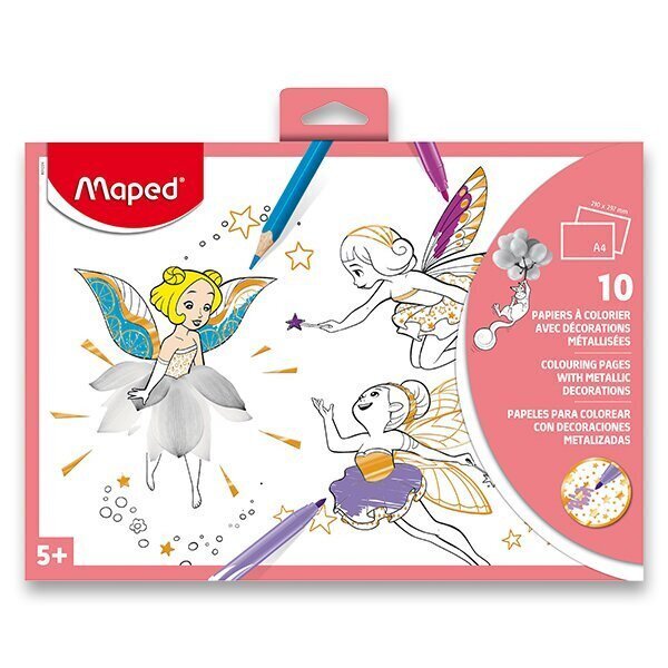 Omalovánky Maped s 10 různými předlohami s metalickým efektem. Výsledný obrázek rozzáří natištěné dekorace ve zlatém, stříbrném ...