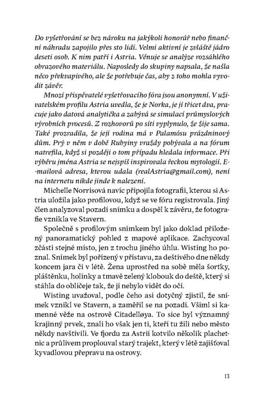Po vraždě australské batůžkářky ve Španělsku vznikne na internetu fórum, jehož členové začnou po pachateli pátrat na vlastní pěst. Patří k nim i mladá Norka, která se zabývá analýzou fotografií. Ve chvíli, kdy natrefí na cosi překvapivého, se ale odmlčí. Zakladatelka fóra se obrátí na norskou...