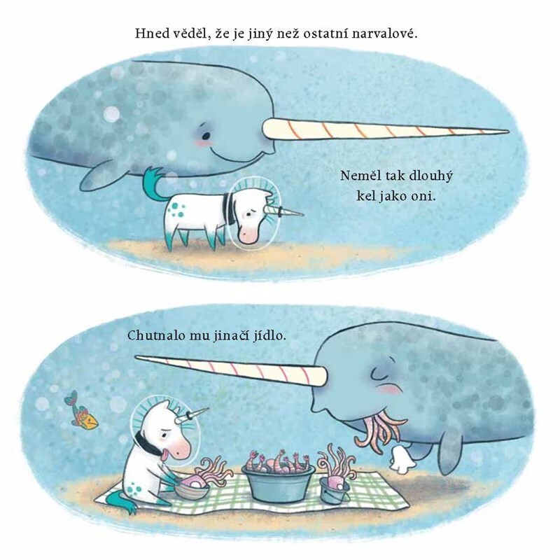 Malý Kelp je sice od narození trochu jiný než ostatní narvalové, ale všichni už si dávno zvykli, že zkrátka neplave tak rychle jako ostatní a že plody moře mu k obědu moc nejedou. Jenže jedné noci Kelp náhodou uvidí stvoření, které vypadá přesně jako on. No ne! Kelp není narval? Kelp je ve...