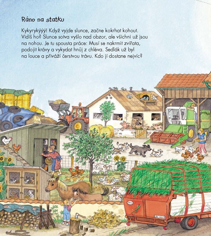 Bagry, traktory, popelářské vozy – a to zdaleka není vše. Můžete si prohlédnout i vrtulník, míchačku kombajn, podíváte se na statek i na letiště a všude vás čeká spousta zábavy. Na každé stránce najdete několik příběhů, o kterých si můžete vyprávět. Tato kniha obsahuje vše, co děti chtějí vědět...