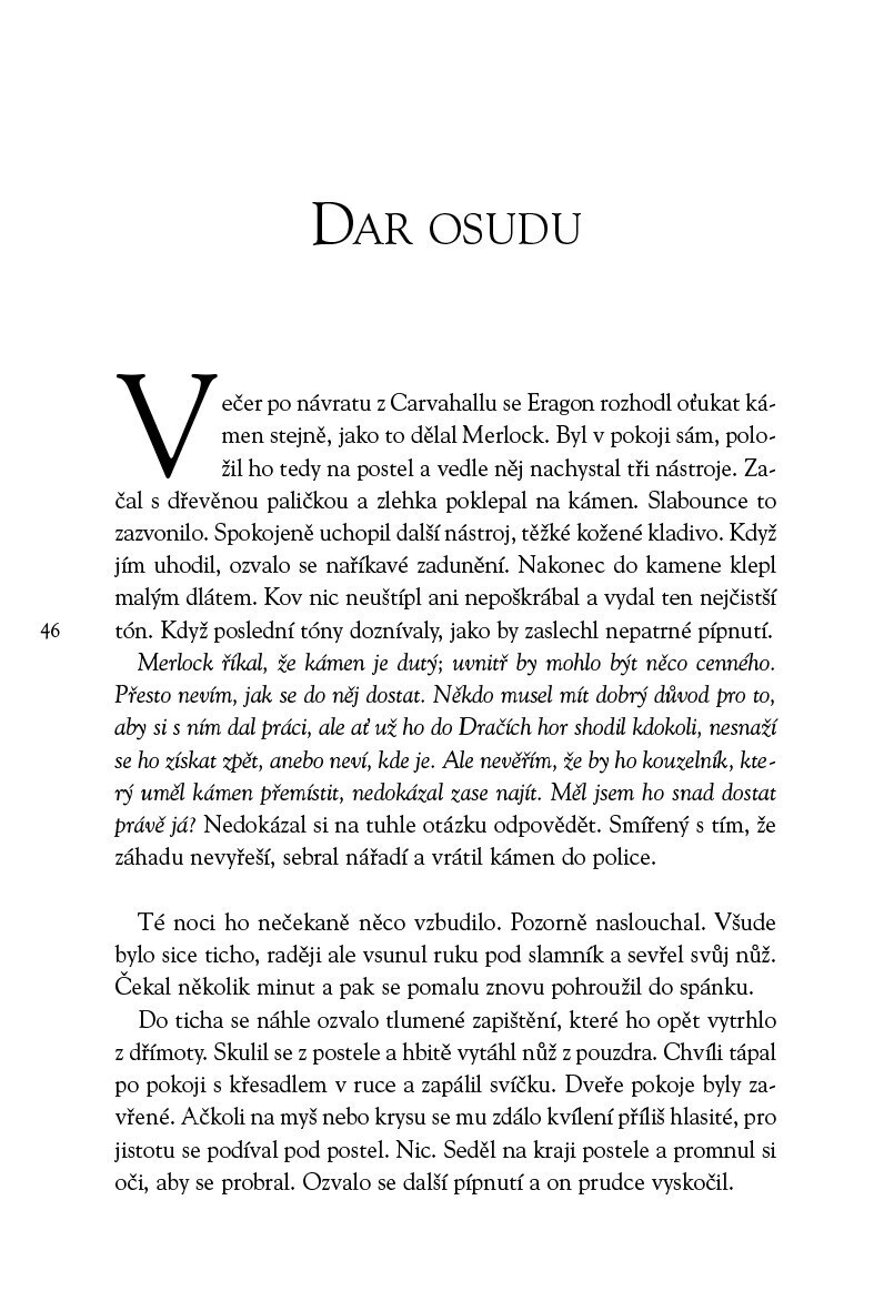 Jeden chlapec, jeden drak, svět dobrodružství… Chudý farmářský chlapec Eragon najde v Dračích horách modrý kámen, z něhož se vyklube dračí mládě - Safira. Spolu se vydají na nebezpečnou cestu královstvím ovládaným králem, jehož zlo nezná mezí. Dokáže Eragon naplnit své předurčení a převzít břímě...