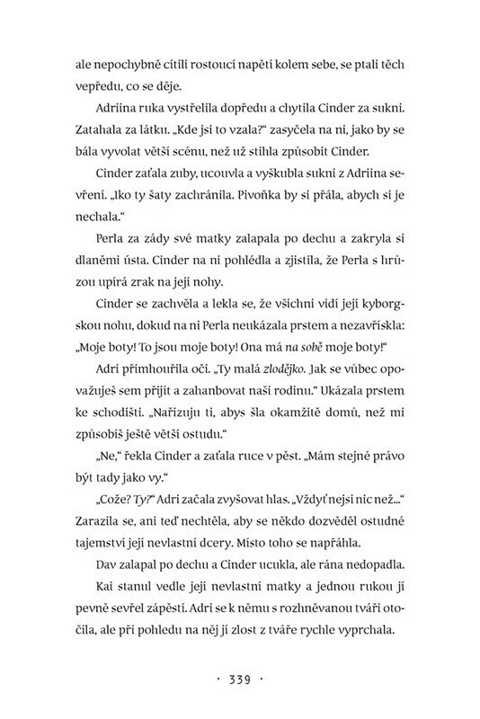 Rušné ulice Nového Pekingu se hemží lidmi a androidy. Populaci devastuje smrtící nákaza. Z vesmíru tomu přihlížejí krutí měsíční lidé, kteří čekají na správný okamžik. Nikdo netuší, že osud Země spočívá v rukou jediné dívky, která se jmenuje Cinder. V tomto napínavém knižním debutu pro mládež,...