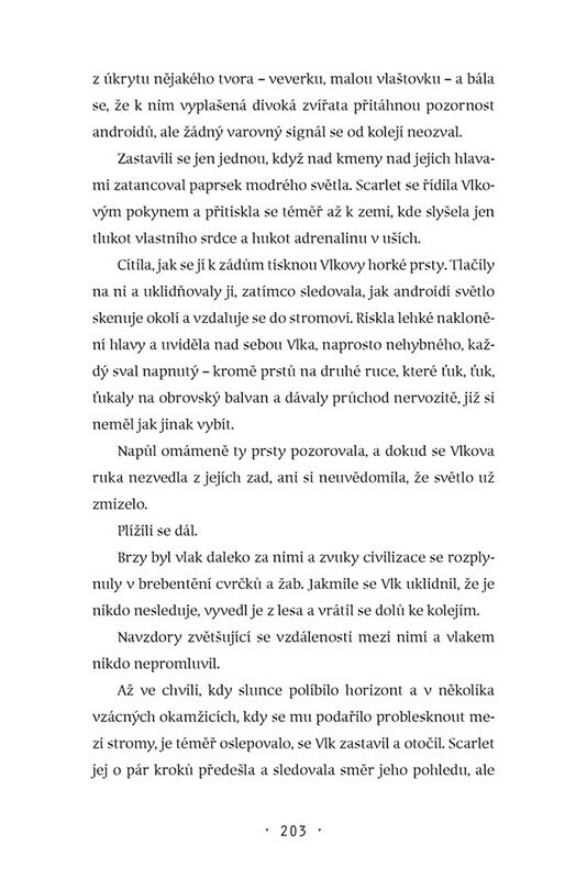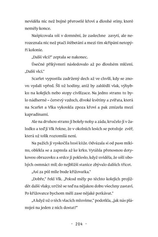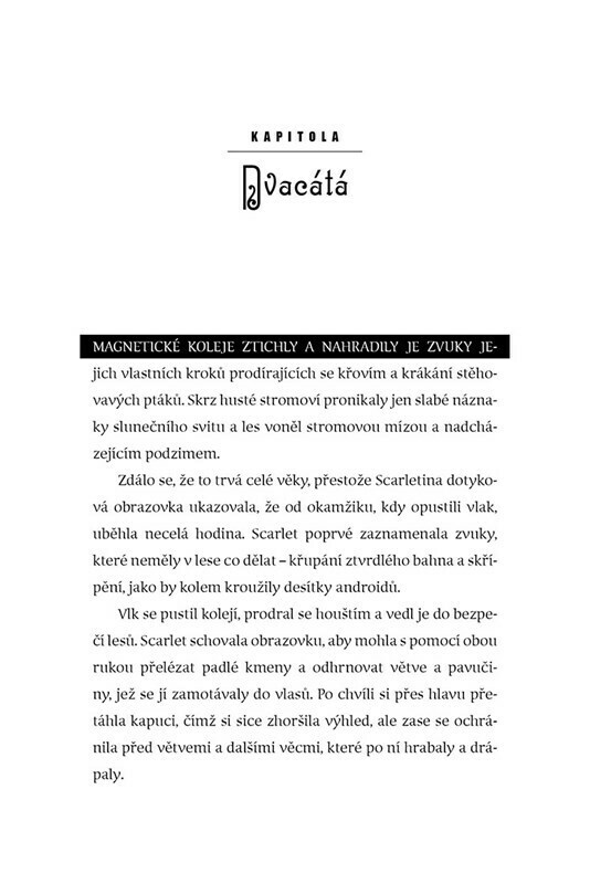 Pokračování románu Cinder a druhá kniha ságy Měsíční kroniky. Osmnáctiletá Scarlet je přesvědčena, že se o sebe dokáže postarat sama, protože k samostatnosti ji vedla její babička. Jenže jednoho dne babička záhadně zmizí a něco s tím má do činění gang nebezpečných mladíků, který řídí divoký Vlk....