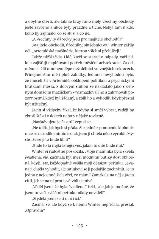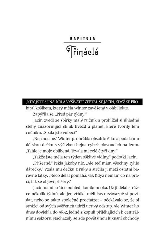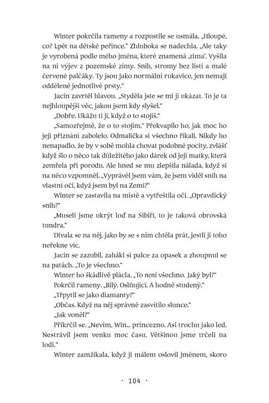 Krásná a všemi milovaná princezna Winter je trnem v oku své mocné maceše královně Levaně. Jenže není tak slabá, jak si Levana myslí. Společně s kyborgskou mechaničkou Cinder a jejími spojenci by se jí mohlo podařit rozdmýchat povstání a ukončit dlouhou válku. Dokážou Cinder, Scarlet, Cress a...