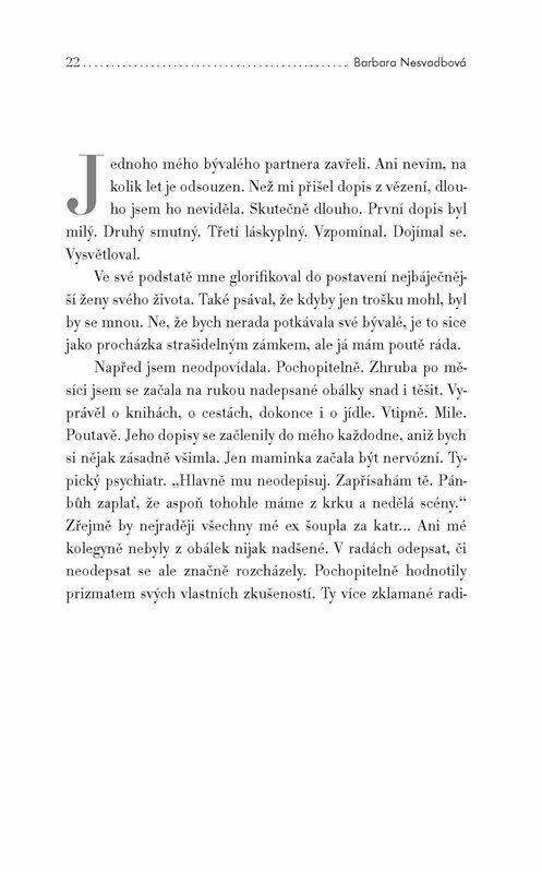 Fejetony a povídky Barbary Nesvadbové poutavě, často sarkasticky, někdy s nadhledem, ale vždy s krystalickou upřímností vypráví o ženském světě. Ať už z pozice manželky, milenky, či matky. Reflektují pozici současných vztahů. Nelehkost navázat blízkost. Tíhu odpovědnosti i touhu po nových...