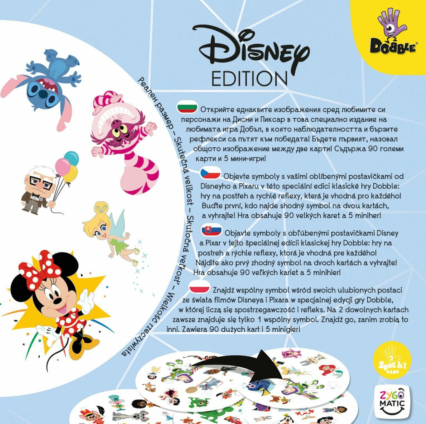 Objevte symboly s vašimi oblíbenými postavičkami od Disneyho a Pixaru v této speciální edici klasické hry Dobble: hry na postřeh a rychlé reflexy, která je vhodná pro každého! Buďte první, kdo najde shodný symbol na dvou kartách, a vyhrajte! Hra obsahuje 90 velkých karet (větších než u klasické...
