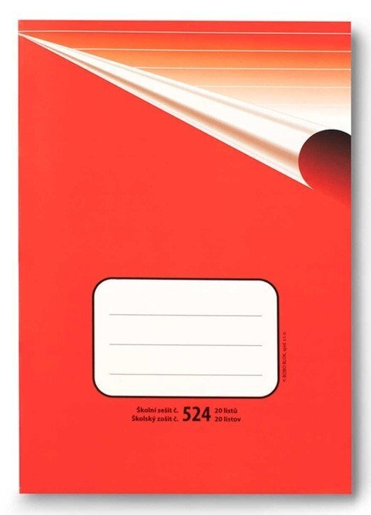 Klasický školní sešit číslo 524, formát A5, 20 listů, linkovaný, 0,8 linky. br brŠkolní sešity mají pevnou papírovou obálku v klasickém retro designu. Na přední obálce je několikařádkový prostor pro nadepsání jména a příjmení, třídy nebo školního předmětu. br