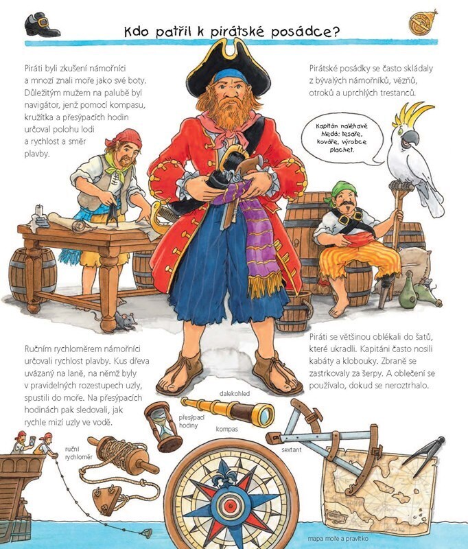 Co piráti na svých loupeživých výpravách jedli, kde se ukrývali před spravedlností, co se dělo s kořistí a jak vypadaly jejich lodě? Na tyto i další otázky odpoví všem malým pirátům a pirátkám nová kniha z naučné edice Už vím proč. Vyrazte s námi na širé moře!