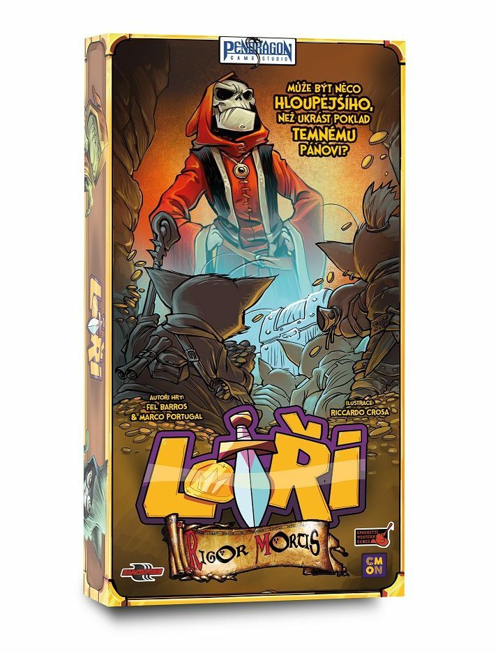 Co se děje s pokladem Rigora Mortise? Opravdu by si nějaký blázen dovolil okrádat Temného pána? Obsah balení: 36 žetonů mincí 40 žetonů životů 6 kostek 60 karet lotrů 6 karet nápověd 4 karty Rigora Mortise 1 česká pravidla