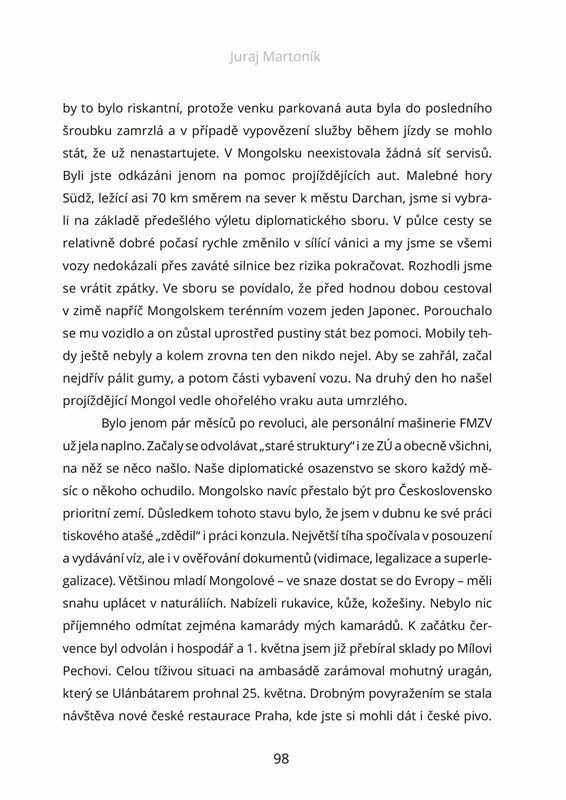 Juraj Martoník nastoupil roku 1984 do diplomatické služby. Jaká byla cesta k tomuto postu v Československu? Jak zvládal „kočovný“ život v natolik odlišných místech naší zeměkoule, jakými jsou Mongolsko a Austrálie? Co mu přinesla doba po roce 1989? A které události tehdy promlouvaly nejen do...