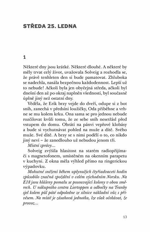 Je 25. ledna, hustě sněží. Toho dne zmizí beze stopy pětiletá Oda. Téhož dne najde student Raimo mrtvé tělo místní malířky Vibeke Hansenové. Rozbíhá se vyšetřování, policie začne vyslýchat místní obyvatele. Všichni se tu znají, každý něco ví, každý má nějaké problémy a něco skrývá, dokonce...