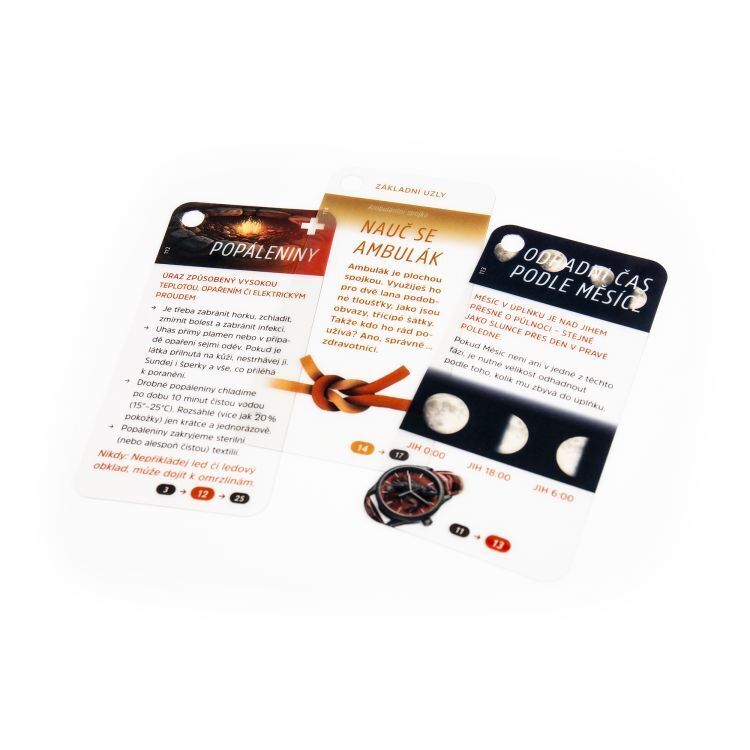 Krabičky pravého dobrodruha vás hravou formou připraví na nejsvízelnější situace, které by mohly v přírodě nastat. Krabička pravého dobrodruha - Přežití v přírodě obsahuje: kapesní skládací vařič, tuhý líh, 30 plastových karet s návody, úkoly, hrami a zajímavostmi, karabinu na uchycení...