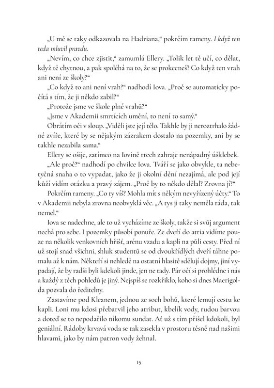 Je veřejným tajemstvím Pěti svobodných republik, že Akademie smrtících umění učí své studenty především tři věci: bojovat, rozpřádat intriky a v případě nutnosti taky zabíjet. Když je však během slavnosti bohyně života nalezena studentka posledního ročníku mrtvá, začíná jít do tuhého. Všichni...
