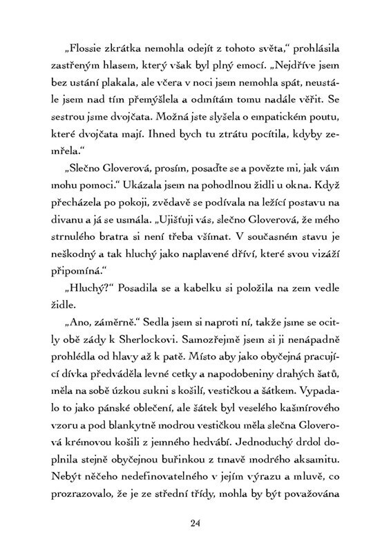 Do Sherlockovy kanceláře přijde slečna Leticie Gloverová, která zoufale touží zjistit více o osudu své sestry-dvojčete. Od jejího manžela, hraběte z Dunhenche, dostala strohý dopis oznamující její úmrtí. Jenže Leticie je přesvědčená, že její sestra žije. Enola se i přes Sherlockovy protesty...