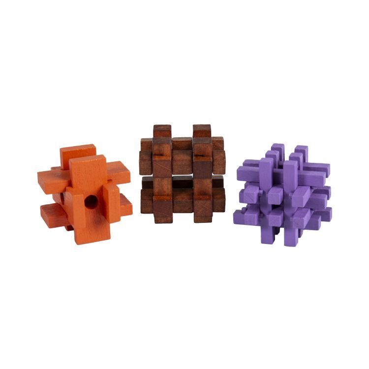 Sada 3 dřevěných hlavolamů procvičí nejen vaši zručnost, ale i logické myšlení.