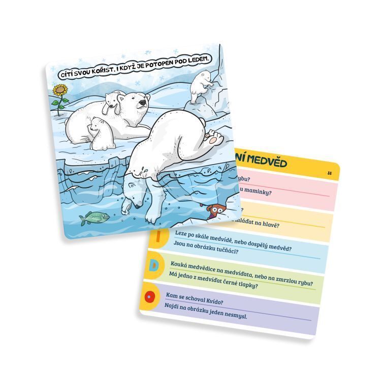 Rychlá paměťová hra Kvído v kostce ze světa zvířecích mláďat i s hrou Kvídova paměťovka, která zapojí najednou všechny hráče do hry. Na ilustrovaných kartách jsou znázorněny informace na téma mláďata. Hráči mají patnáct vteřin, aby si z vybrané karty zapamatovali co nejvíce, a zvládli odpovědět...