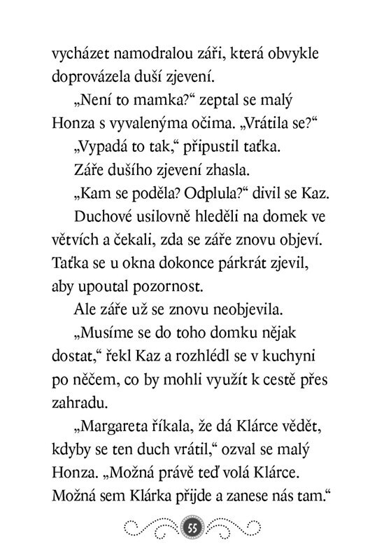 Kaz není obyčejný kluk, je to duch. Klárka zas není obyčejná holka – na rozdíl od ostatních lidí totiž dokáže vidět duchy. Jejich detektivní kancelář je proto jako stvořená pro řešení zapeklitých záhad! Z domku na stromě, kde se schází dívčí klub, se začaly ozývat podivné zvuky a vzdechy. Má je...