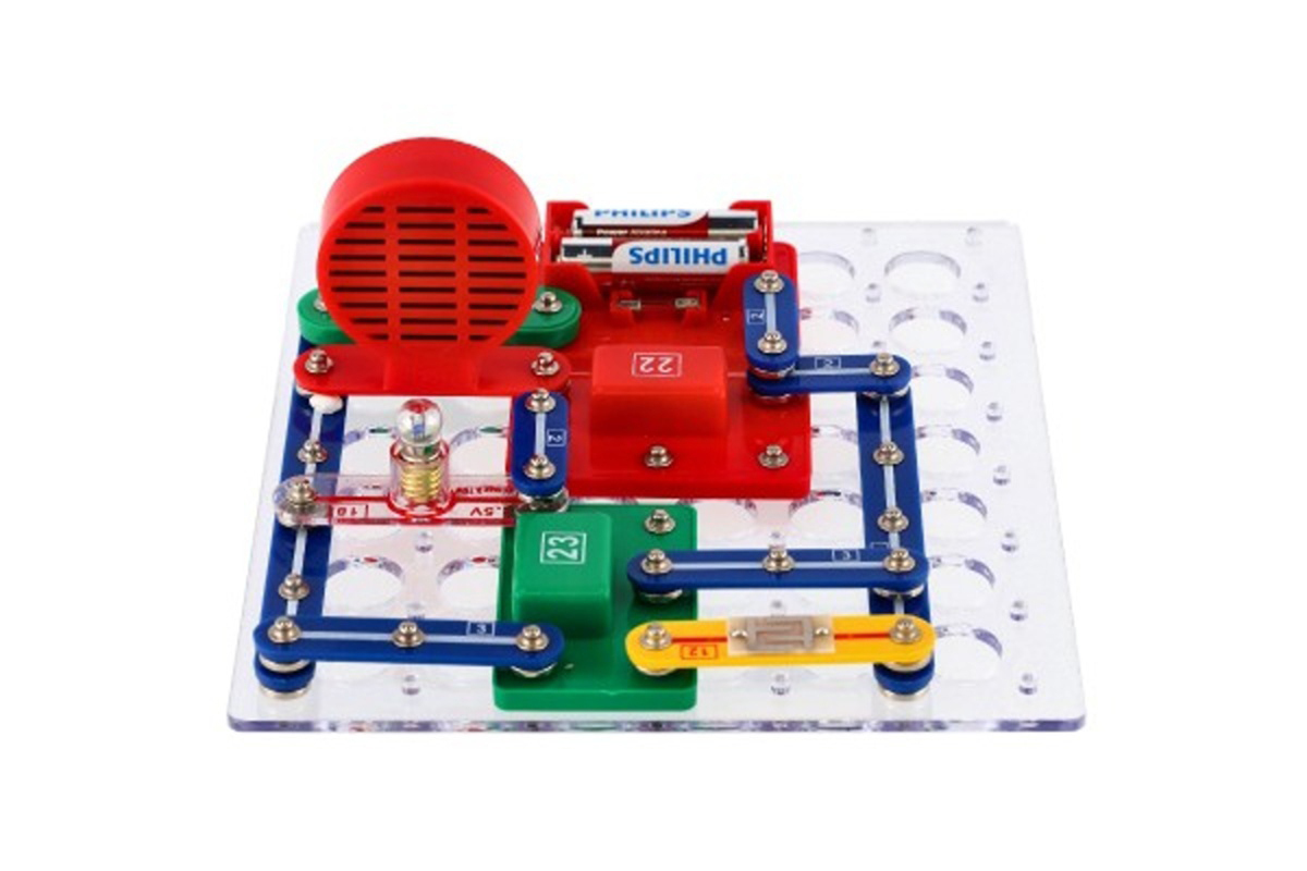Elektronická stavebnice, která děti neustále nutí stavět, zkoušet a objevovat nové elektronické projekty. Obsahuje podrobný návod v češtině, který nabízí schémata 180 projektů. Vstupte do tajemného světa elektroniky a elektrotechniky. Díky jednoduchému principu sestavování přehlédnému rozložení...
