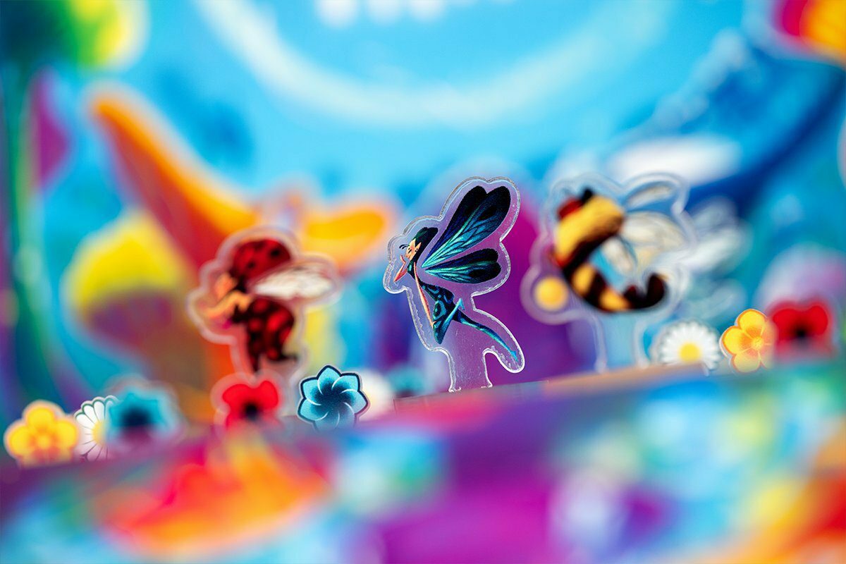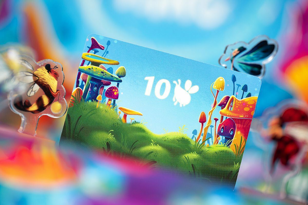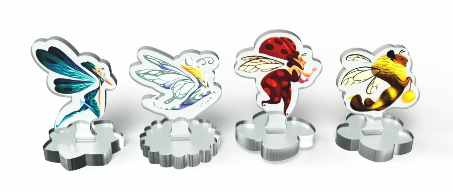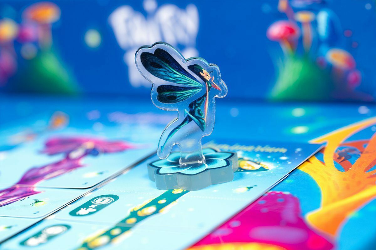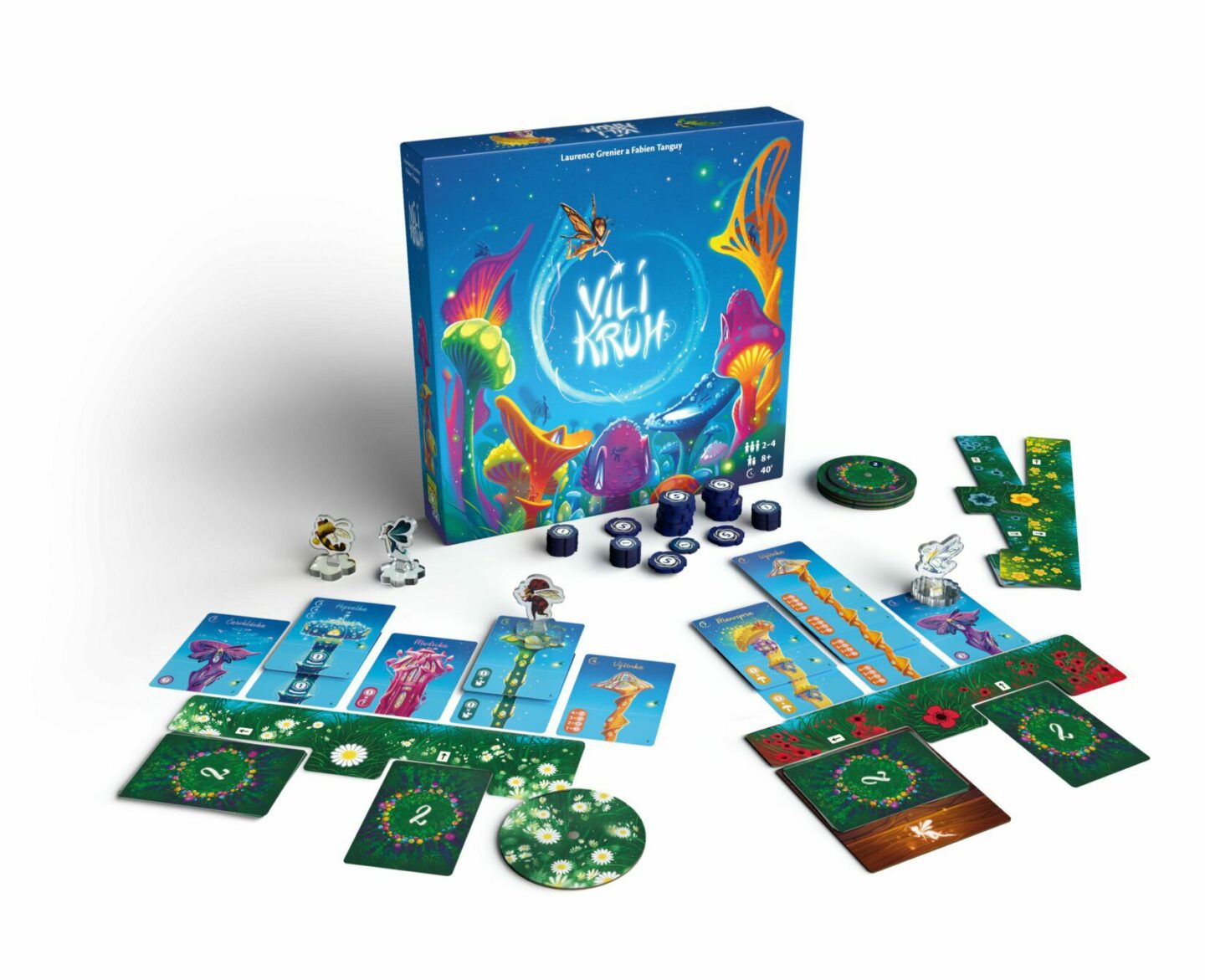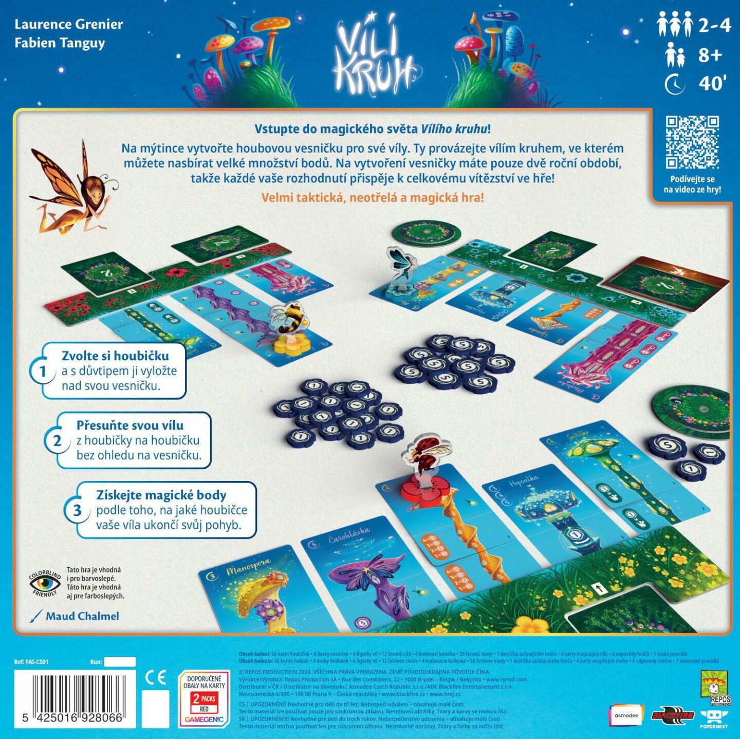 vílu z houbičky na houbičku bez ohledu na vesničku. - Získejte magické body podle toho, na jaké houbičce vaše víla ukončí svůj pohyb. Obsah balení: 66 karet houbiček 4 desky vesniček 4 figurky víl 12 žetonů cílů 4 bodovací kolečka 50 žetonů many 1 destička začínajícího