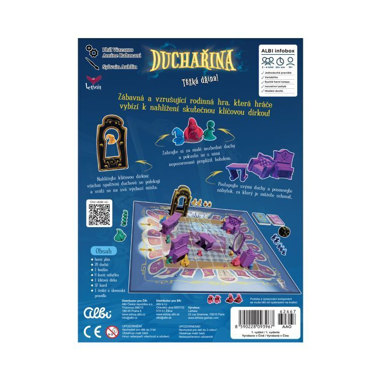 Karty se obrátily a místo toho, aby duchové strašili, schovávají se před lidmi. Dostaňte co nejvíce svých duchů do bezpečí! Rodinná hra, ve které se jako duchové schovávávate za nábytek a přesouváte ho. Hra obsahuje: 28 figurek duchů, 1 šestistěnnou kostku, 6 kusů nábytku, 1 klíčovou dírku, 32...