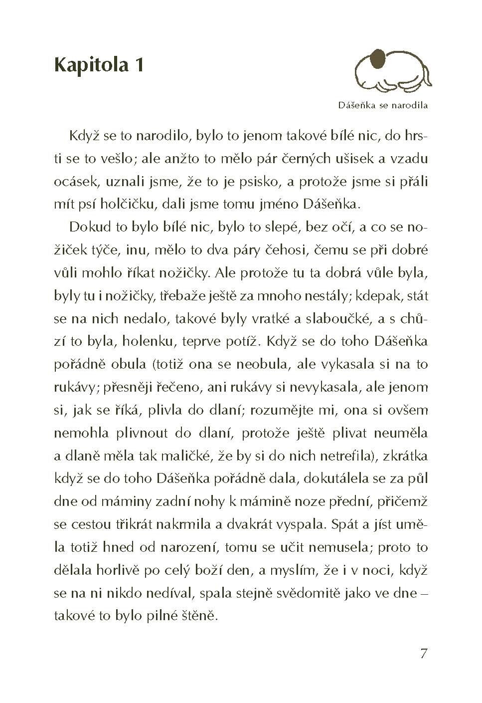 Klasika z dílny Karla Čapka. Život Dášeňky zapsal reportážním stylem, ve fotografiích a ilustracích zaznamenal a doplnil vtipnými komentáři i psími pohádkami. U čtení se baví už více než osmdesát let nejen děti, ale i jejich rodiče. Vychází v edici Zlatý tucet Albatrosu.