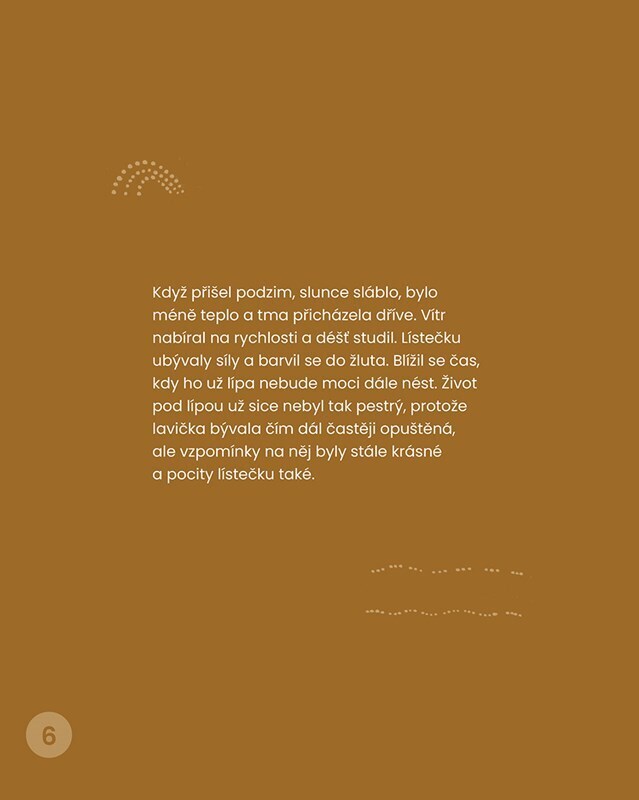 Poetický ilustrovaný příběh lipového listu o koloběhu života a smrti a čtyři odborné články terapeutů o tom, jak a proč s dětmi na toto téma mluvit. Lipový lísteček se narodí na velké lípě. Pozoruje, jak roste, a vnímá život kolem – zvířátka i momenty ze života lidí. Užívá si léto, ale s...