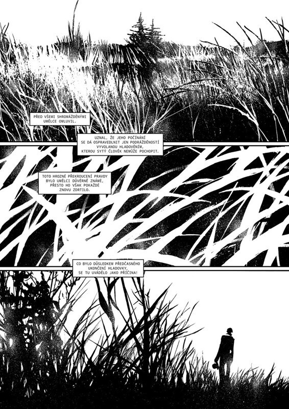 Mrazivý příběh sestavený z Kafkových povídek a textů. Hladovkář, Před zákonem, Touha stát se indiánem, Pravda o Sanchu Panzovi... Dokreslené působivou černobílou grafikou, v níž vyniká naléhavost těch nejtěžších otázek o existenci člověka, jaké si můžeme spolu s Kafkou...