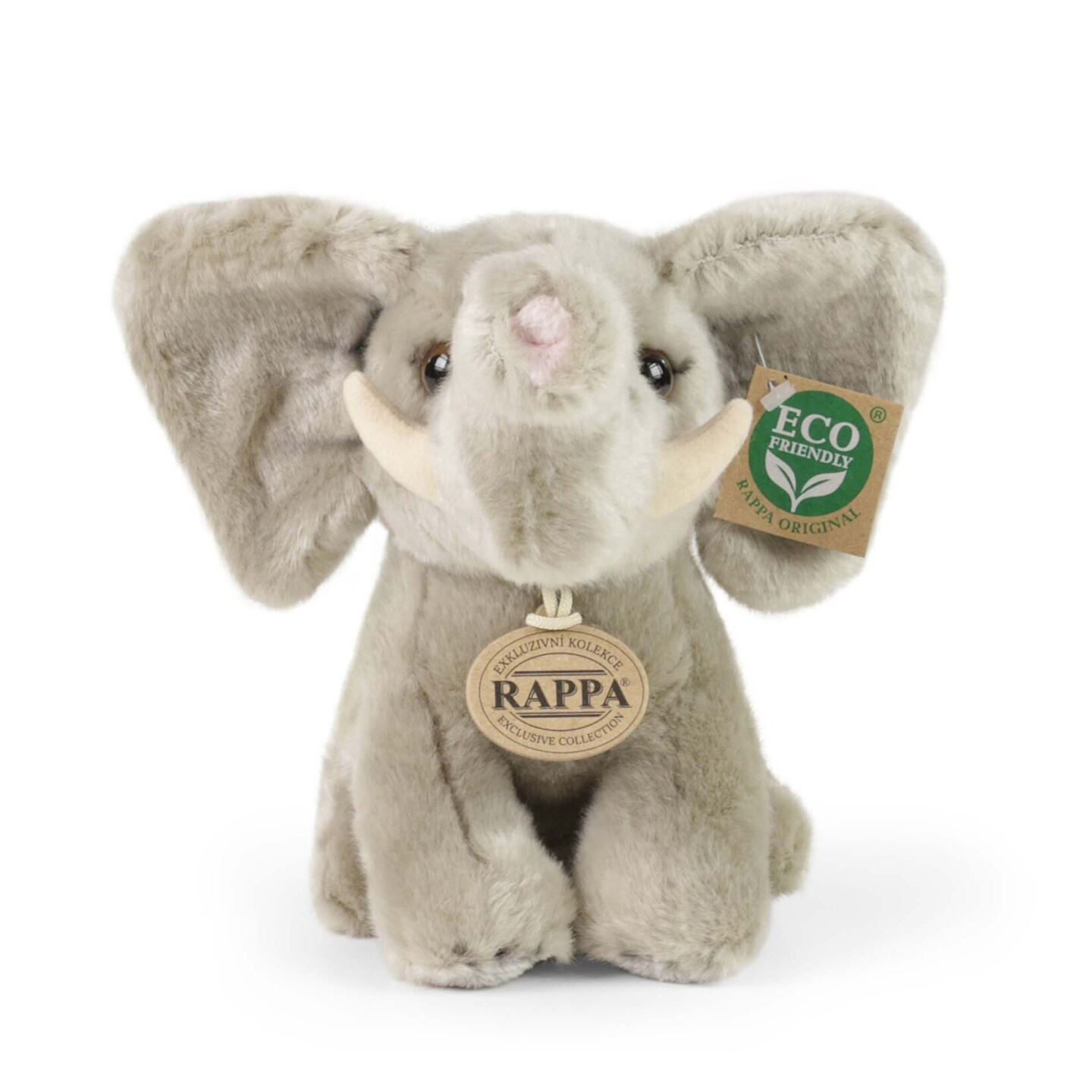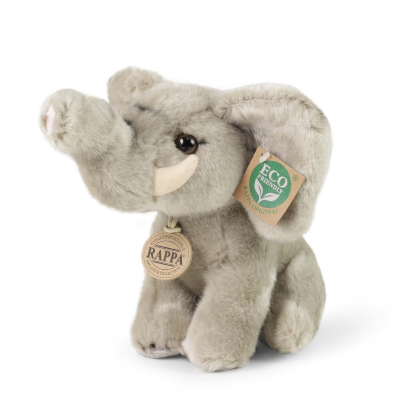 Krásný plyšový slon ve velikosti 18 cm je vyroben z exkluzivní, velmi kvalitní plyše a je součástí exkluzivní kolekce plyšových hraček RAPPA. Tento senzační plyšový kousek je ideální i jako dárek! Co to vlastně ECO-FRIENDLY znamená? Výplň plyšové hračky je vyrobena z recyklovaných PET lahví....