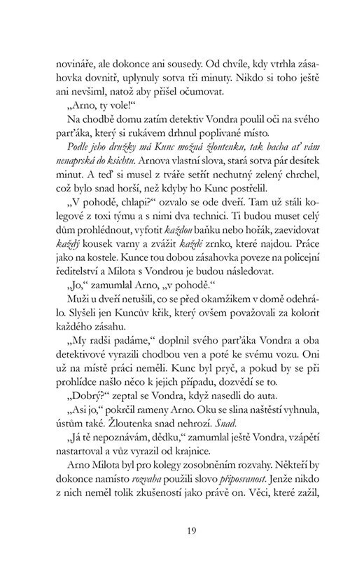 Arnošt Milota alias Arno je detektiv na odpočinku. Vypadá to ale, že vyšetřování zločinů je jeho osudem. Potom, co odešel z aktivní služby, vrací se do rodné vsi a řeší případy s přístupem typickým pro vyšetřovatele ze staré školy. Žádné drony, forenzní analýzy, počítačové modely nebo...